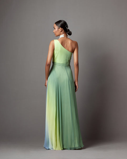 Best SellerLime Ombre Georgette Printed Draped Gown