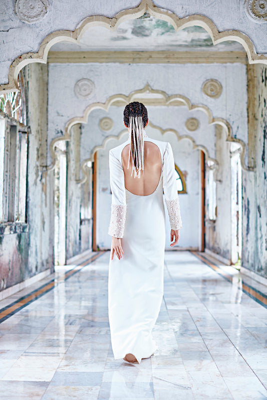 Best SellerWhite Embellished Jacket Gown