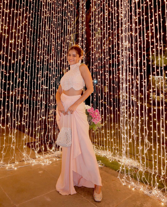 Best SellerKhushi Kapoor in Our Blush Wrap Skirt Set