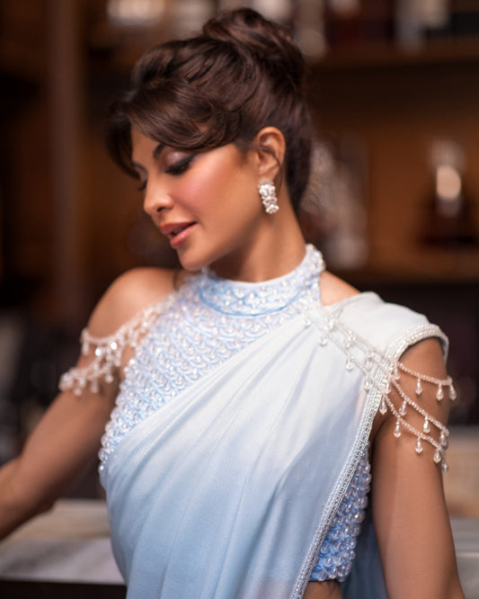 Jacqueliene Fernandez in Our Azure Pearl Saree Set