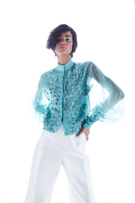 Oceanic draws inspiration from luxurious tropical escapes, blending aquamarine tones, underwater botanicals, and tranquil sunsets. The collection pairs these natural elements with elevated textiles and contemporary silhouettes for a refined, resort-ready feel.
