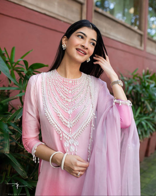 Hanna Khan in Rose Quartz Kurta Set With Pearls