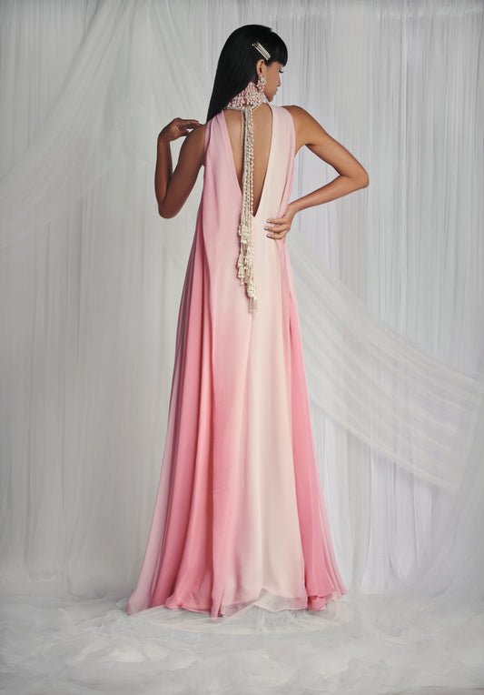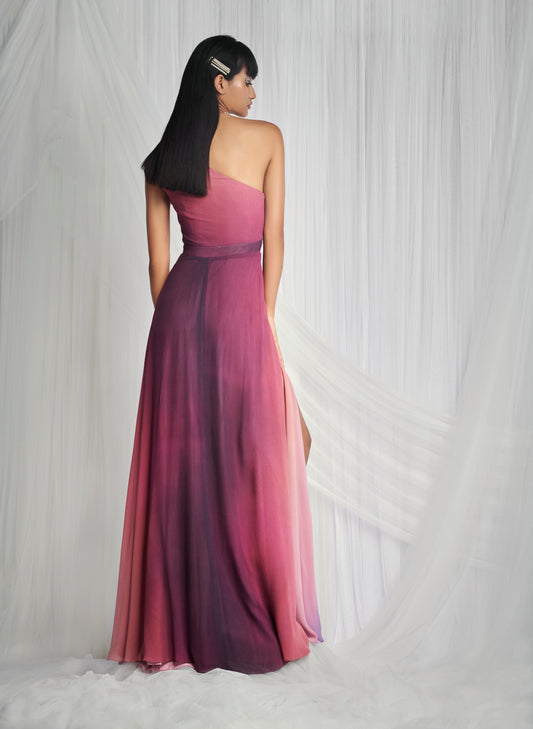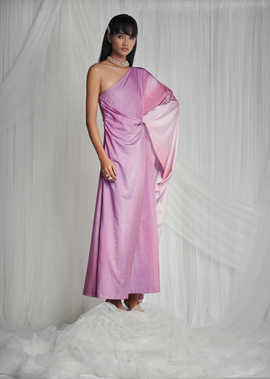 Best SellerDusk Pink Shaded Printed Draped Gown