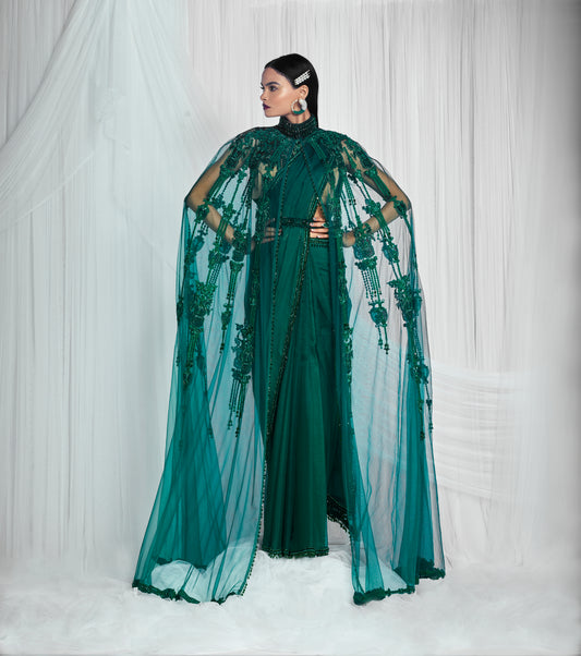 Trésur is a regal fusion of jewellery and couture, inspired by the timeless elegance of Hyderabad’s Chowmahalla Palace. From grand chandeliers and royal portraits to glistening gardens and gemstone hues, each piece captures the palace’s opulence. Rich tones of ruby, sapphire, emerald, and amethyst echo in the designs—celebrating nostalgia, beauty, and the art of treasured details.