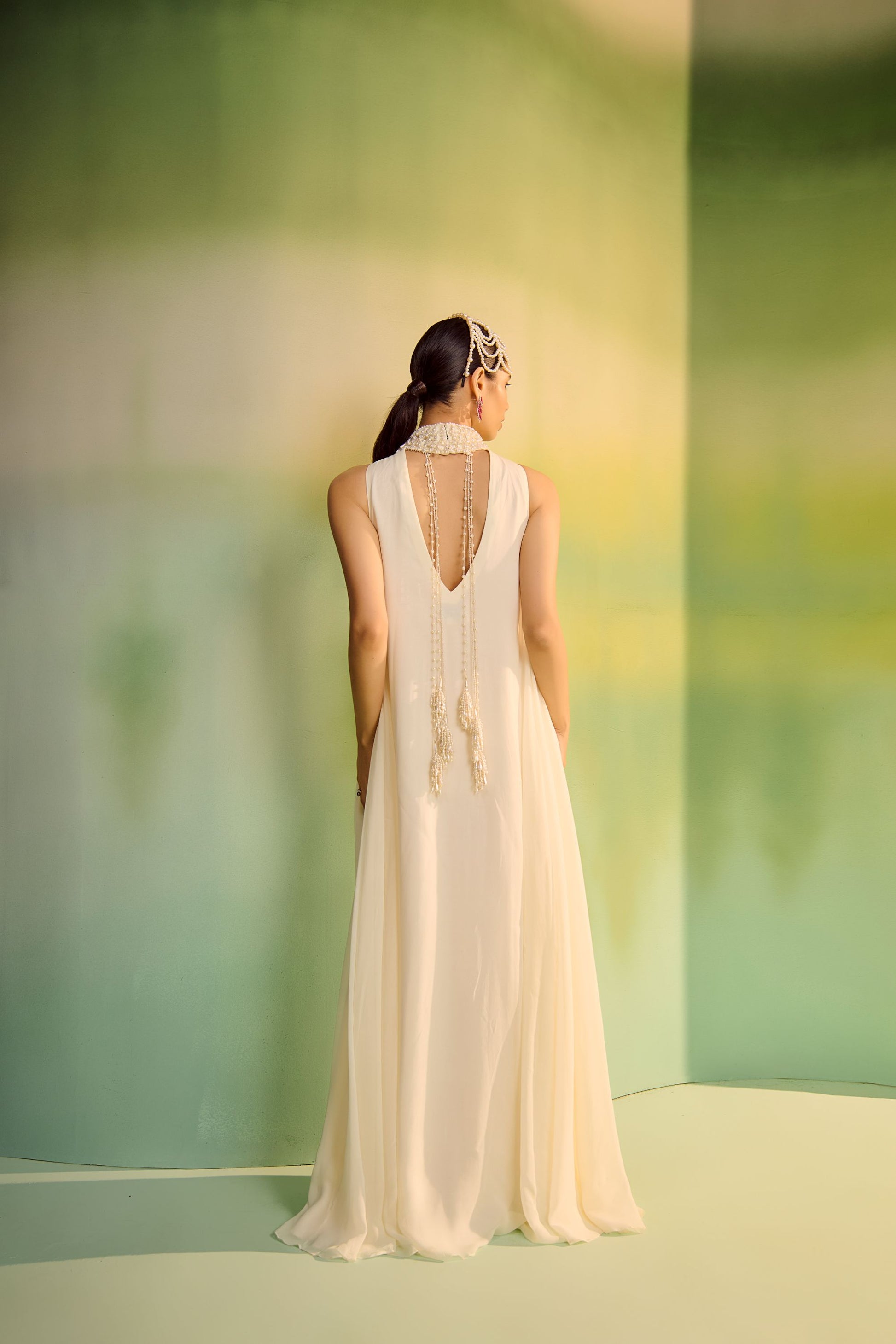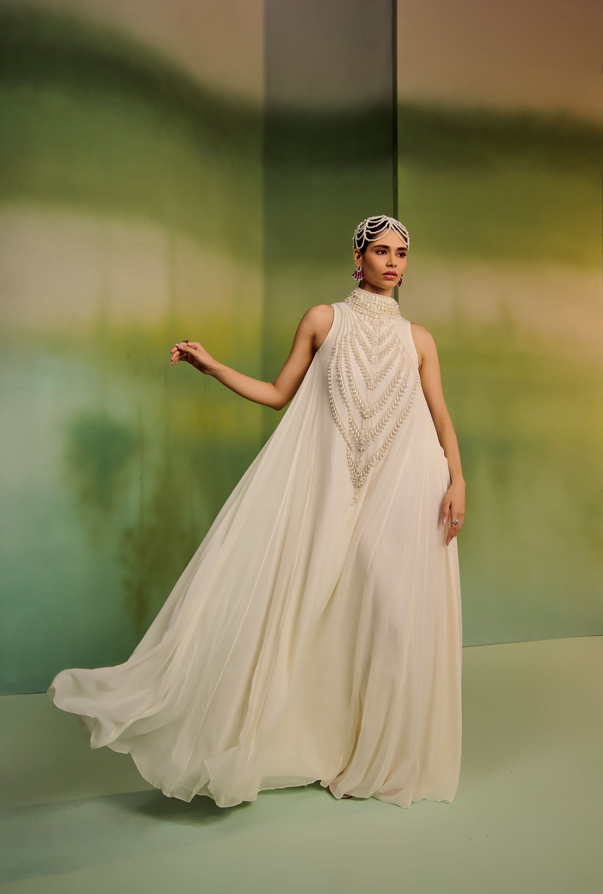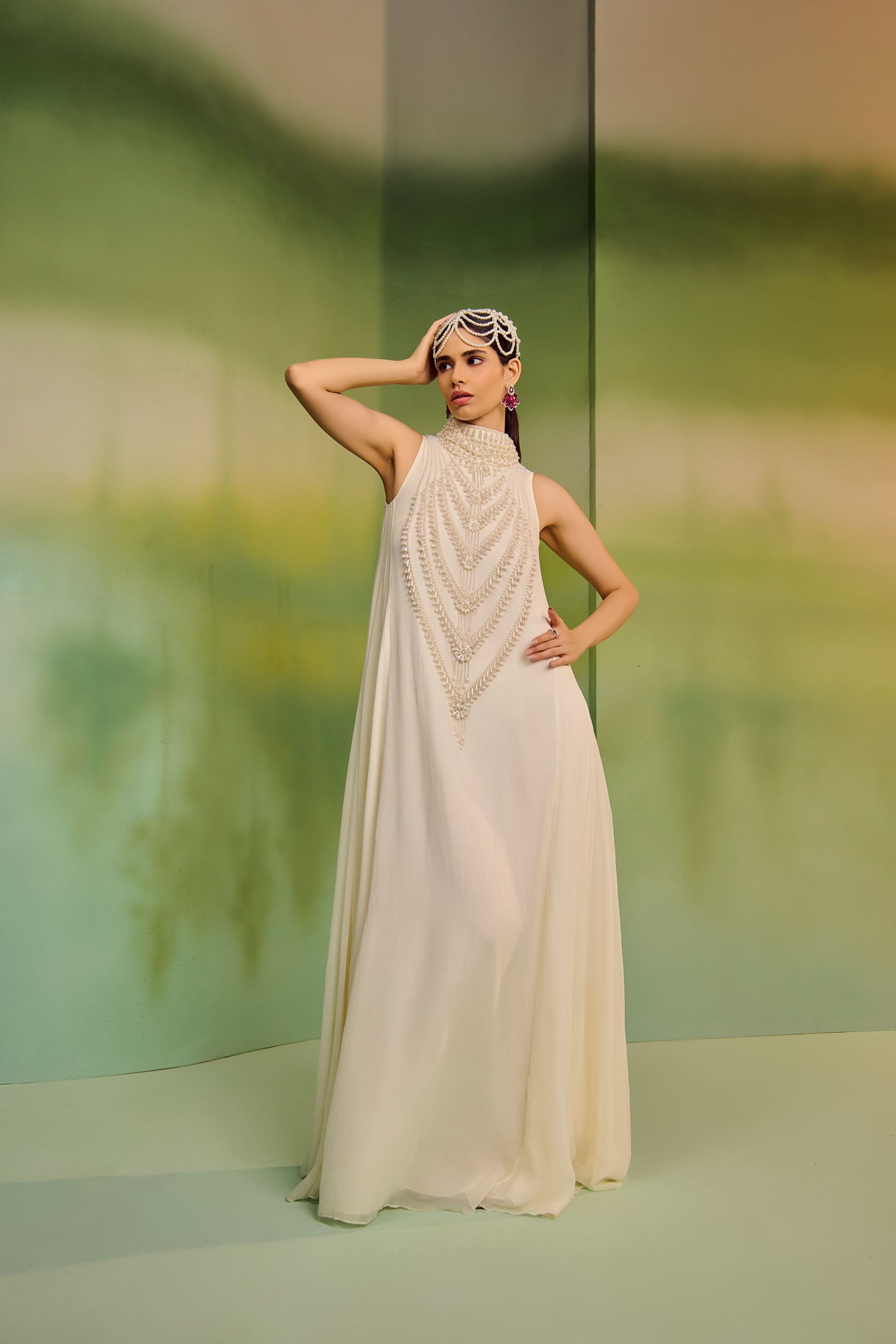 Mala Maxi in georgette with pearl embellished Malas motifs